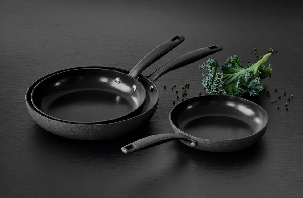 Morsø Black Fossil er en serie af moderne gryder og pander i smukt design med et mørkt og eksklusivt udtryk. Kroppen på seriens gryder og pander er fremstillet af 100 % genanvendt aluminium. Indvendigt har produkterne en sort keramisk belægning, udvendigt er de sandblæst og forsynet med en varmeresistent sort coating, og alt er produceret uden PFAS. Selv om produkterne ser tunge ud, føles de lette, når du får dem i hænderne. Black Fossil-produkterne er formet i ét stykke med induktionsbund. Bunden er sprayet med metalpartikler, hvilket betyder, at de er velegnede til alle varmekilder, også induktion. Det betyder også, at du skal løfte dem, ikke skubbe, når du flytter dem på komfuret, for at undgå ridser. Håndtag og greb er af støbt stål med matsort finish. Produkternes elegante konstruktion med lodrette sider og en afrundet overgang mellem sider og bund udnytter formen effektivt og giver panderne en stor stegeflade. 20, 24 og 28 cm.